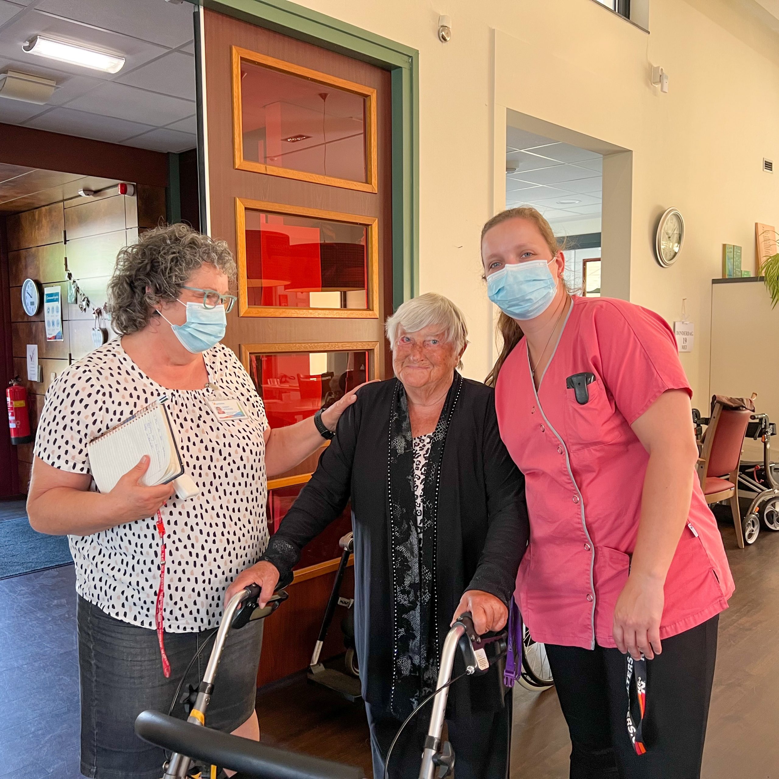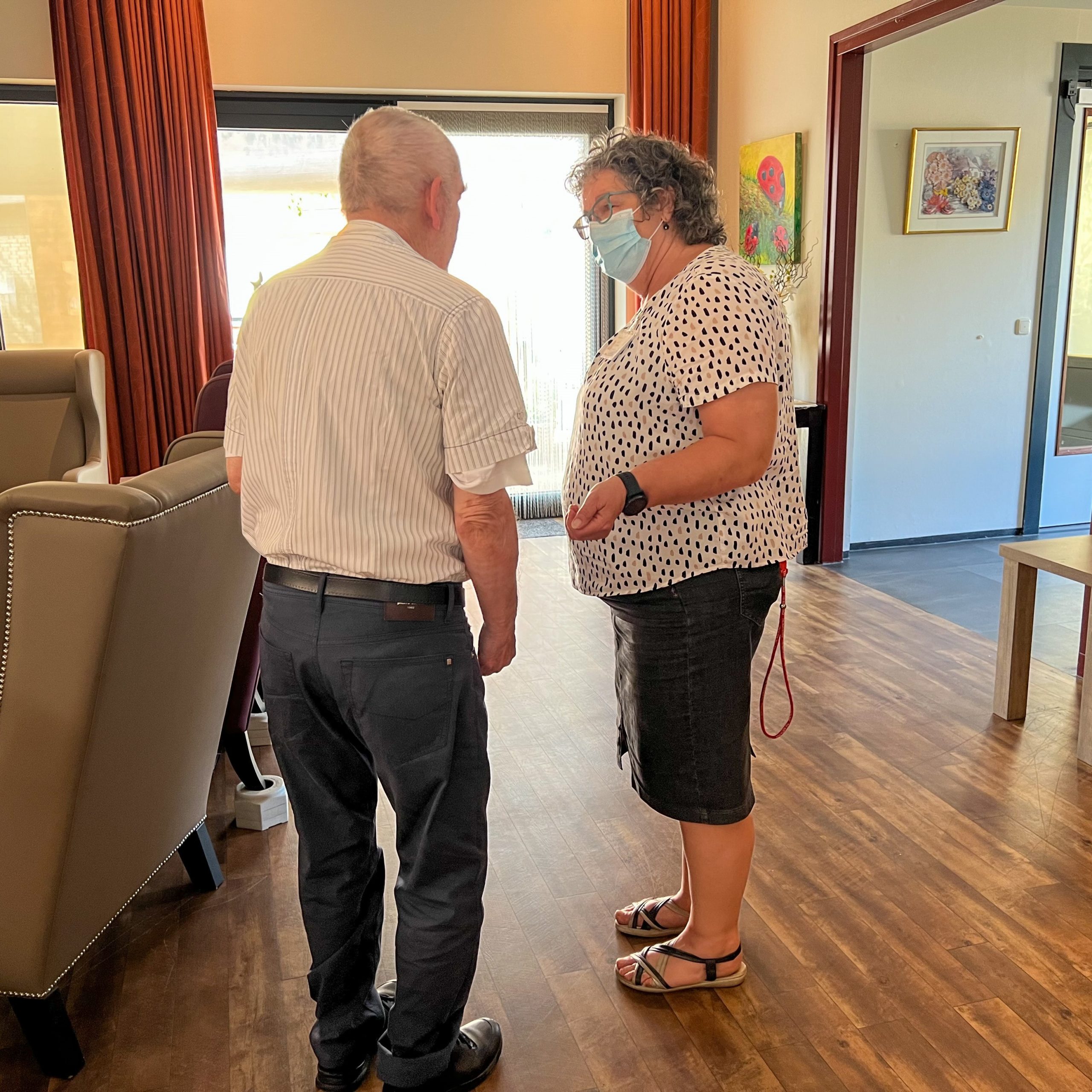 “Ik vind het belangrijk dat bewoners mij kennen en vertrouwen. Daarom ga ik regelmatig langs voor een praatje, ook als er geen behandeling nodig is. Dit zorgt ervoor dat bewoners zich meer op hun gemak voelen als er wél een lichamelijk onderzoek nodig is. Zo probeer ik het de bewoner zo comfortabel mogelijk te maken.”