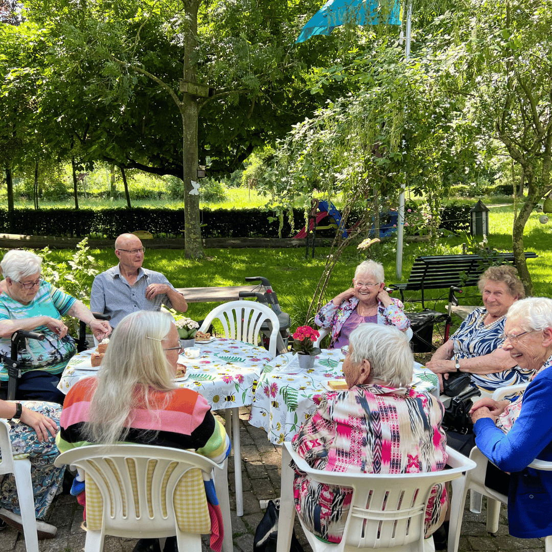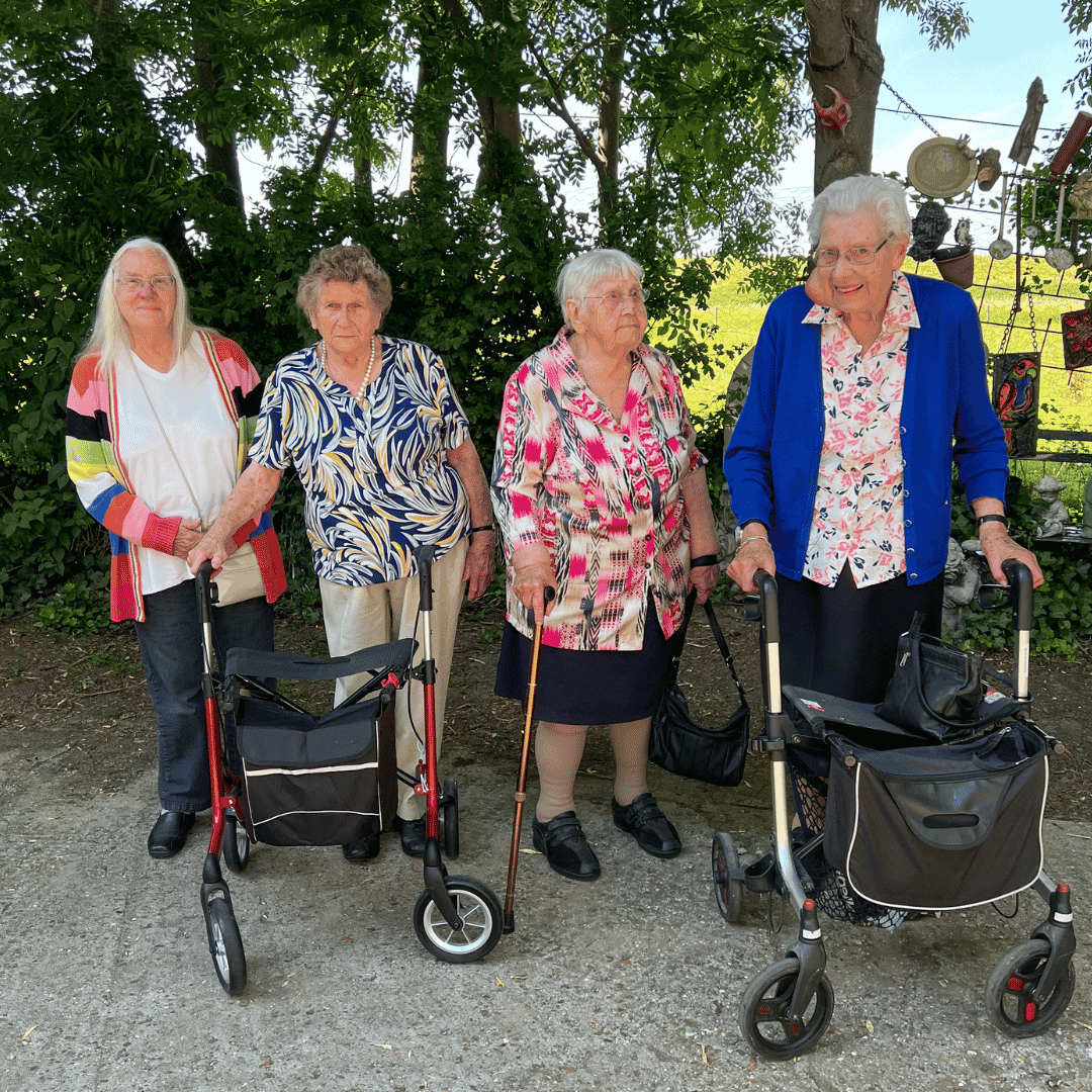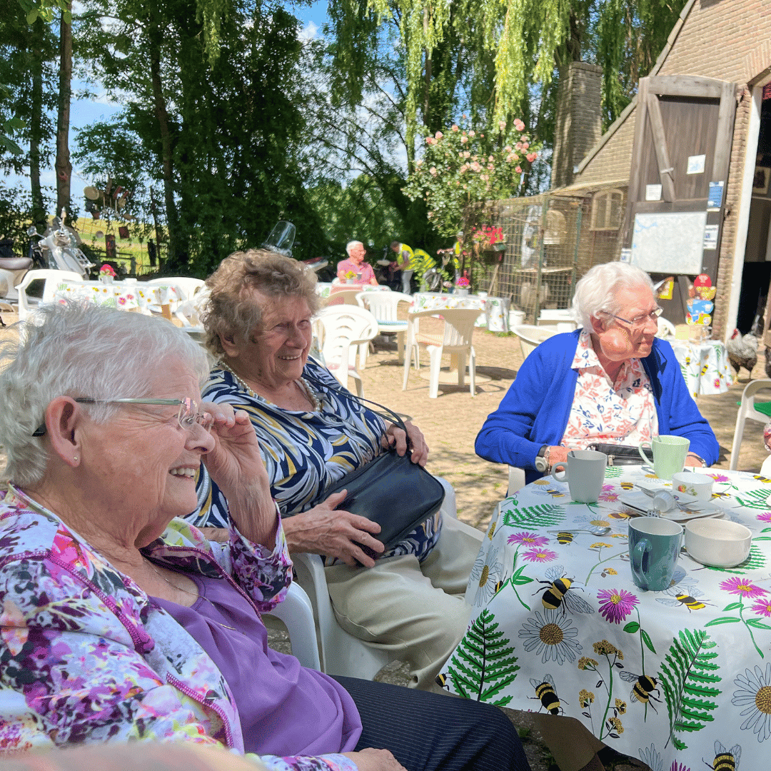 “Onlangs hebben we met een groep een klein cafeetje bezocht in Keent. Het feest begon al in de bus! We gingen via een toeristische route, door een natuurgebied mét Nederlandse Schlager muziek op de radio. Eenmaal op het terras genoten we samen van lekkere appeltaart met koffie. Er was ook een museum met huishoudelijke apparatuur uit de jaren 60, wat veel herinneringen opriep. Het was een geweldige dag waarbij we samen veel hebben gelachen.”