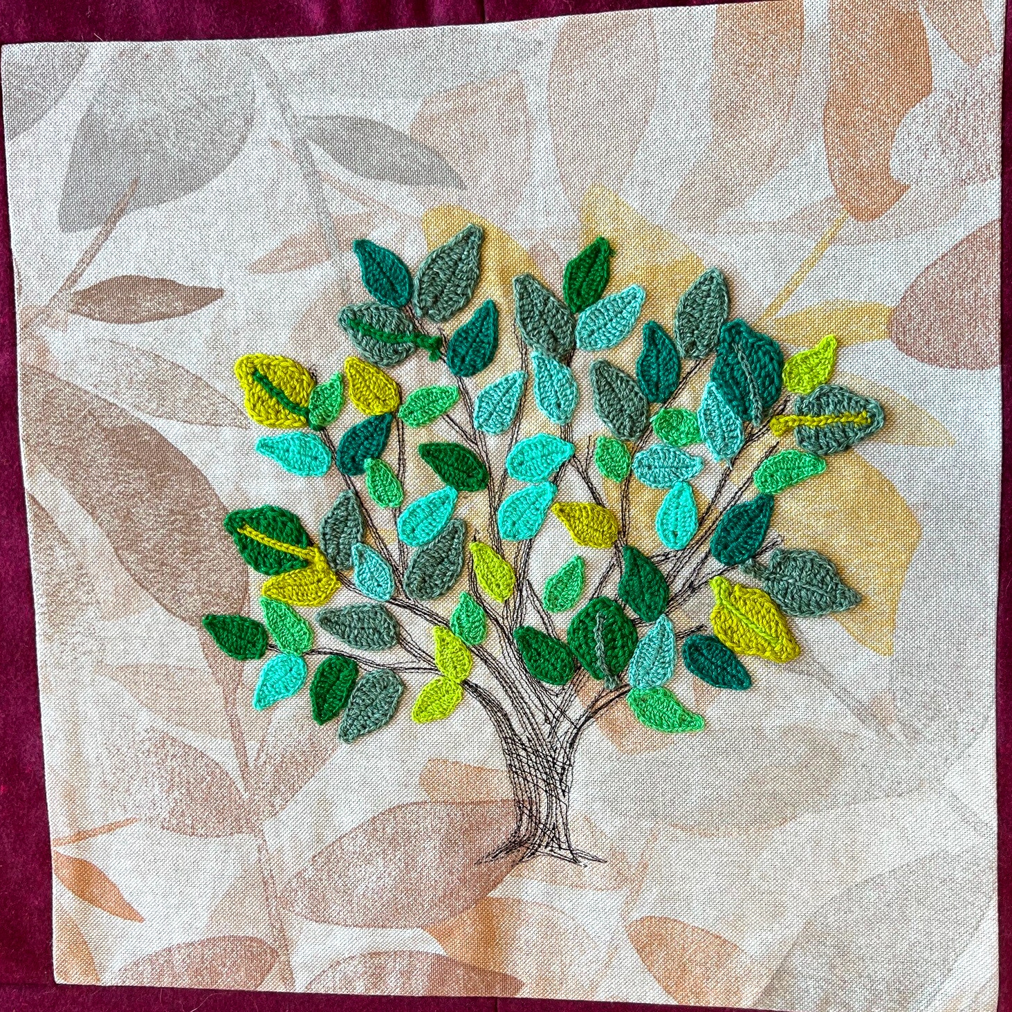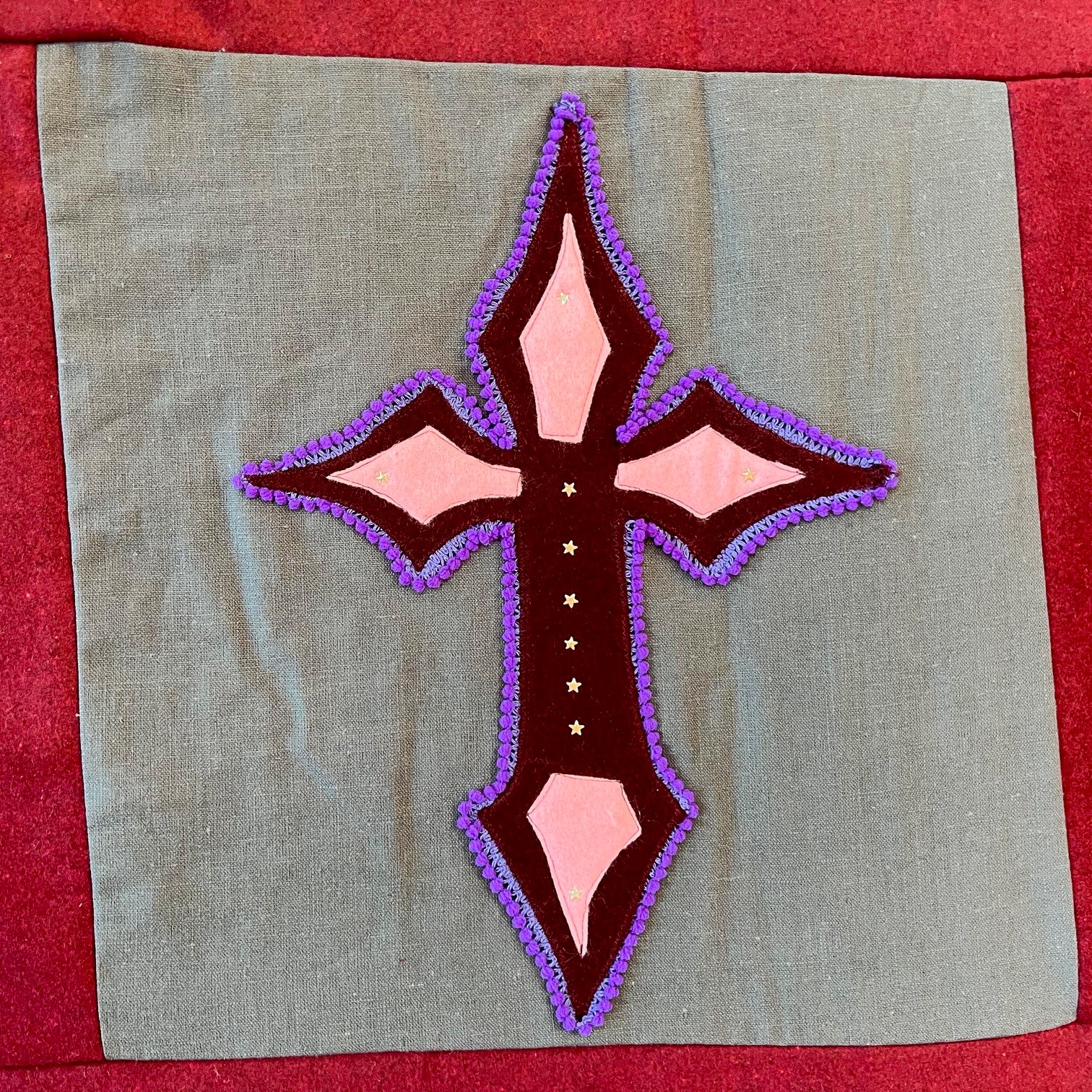 Elly (verzorgende): “Voor mijn ontwerp heb ik een kruisje gemaakt. Het kruisje staat voor mij symbool voor de dood en dat mag, vind ik, niet ontbreken op deze warme deken.”