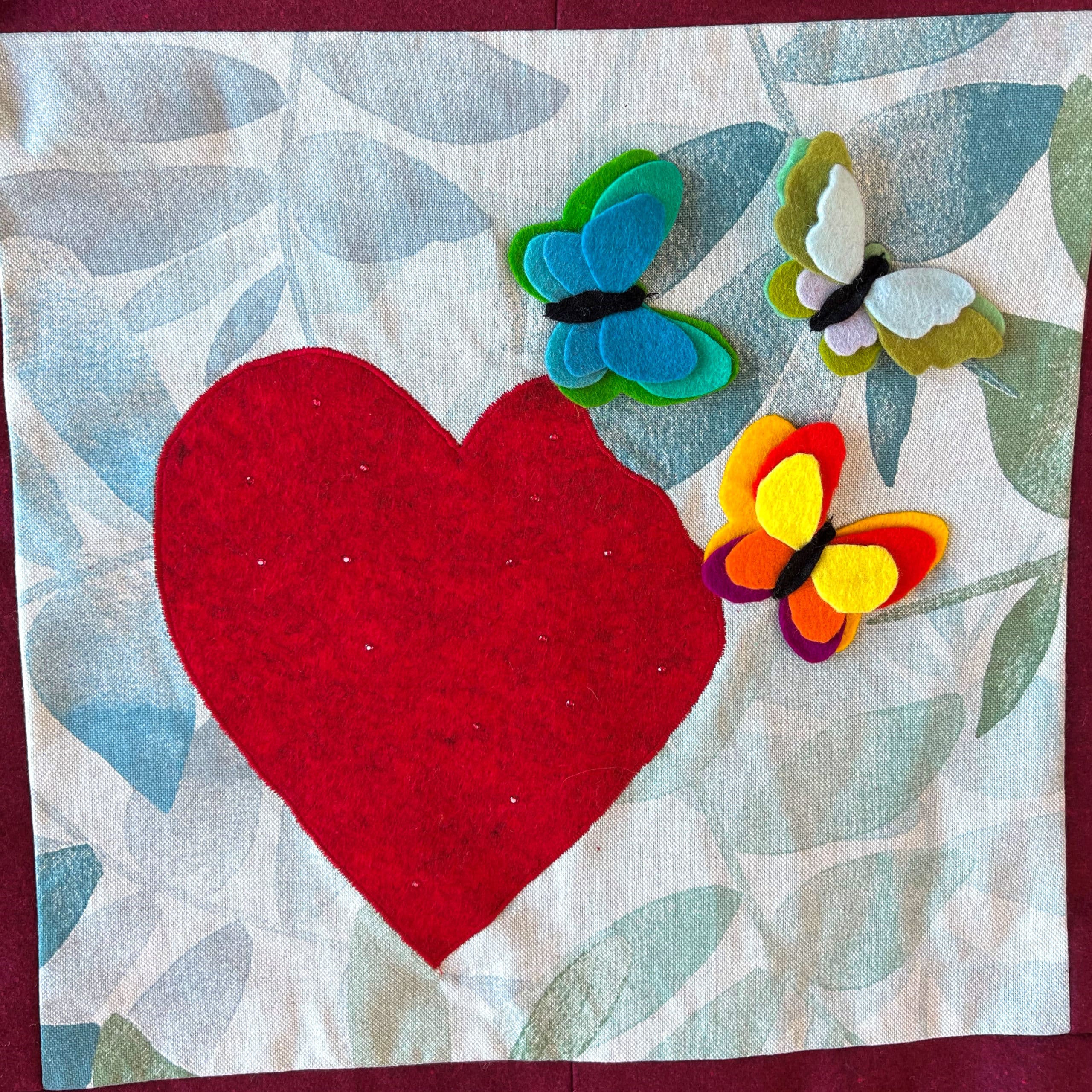Claudia (verzorgende IG): “Voor mijn stukje heb ik gekozen voor veel kleur en glamour. Het ontwerp straalt plezier uit en dat is precies wat ik in de 13 jaar dat ik bij Libermannhof werk voel in het verzorgen en begeleiden van onze bewoners. Het gekleurde hart staat voor de bewoners en het gouden randje voor de band die we samen opgebouwd hebben. Goud is dat zeker! De vogel staat voor een nieuw bestaan. Als een bewoner komt te overlijden, voelt dat als een afscheid. Wat volgt is een laatste groet. De herinneringen blijven als een gouden randje bestaan in mijn eigen hart.”