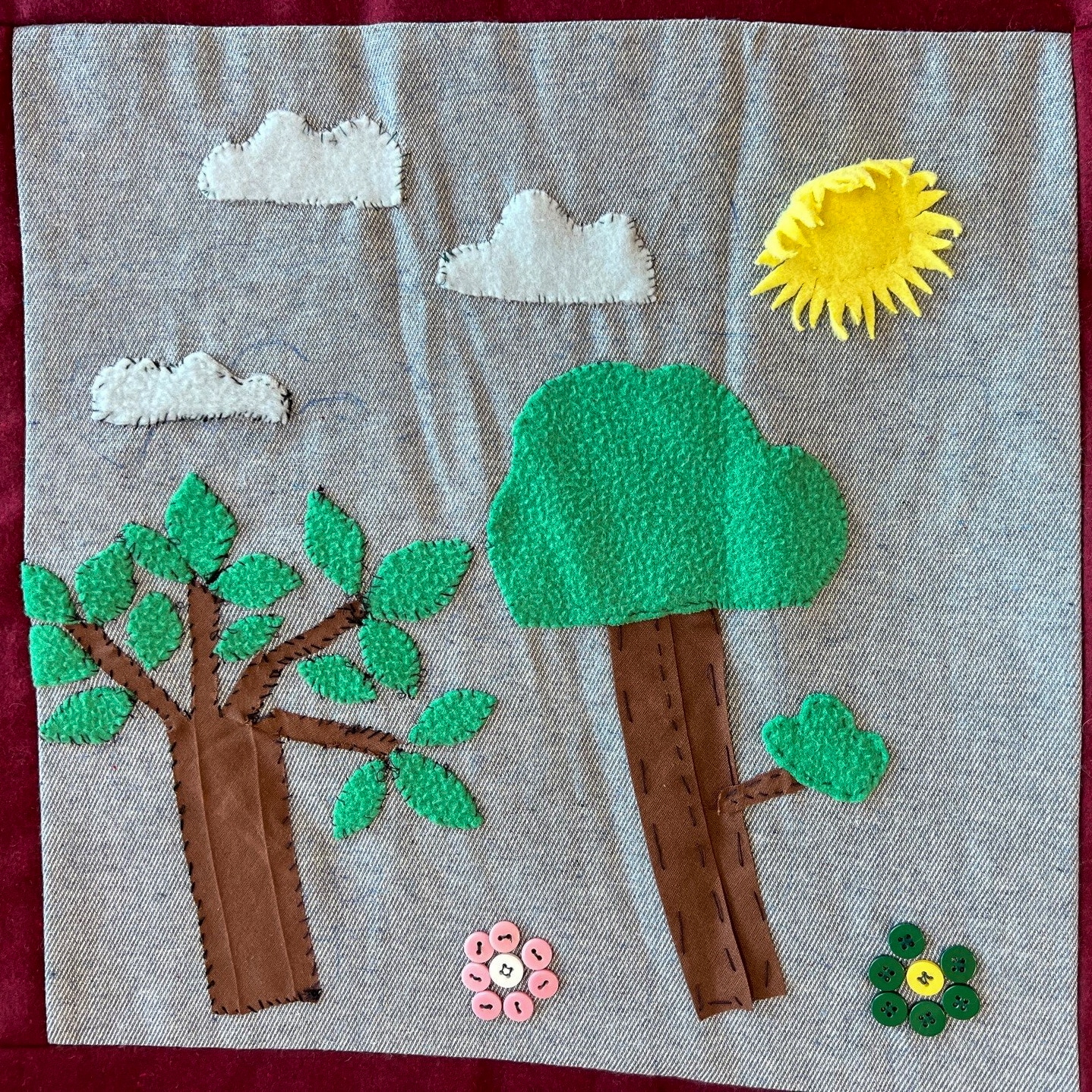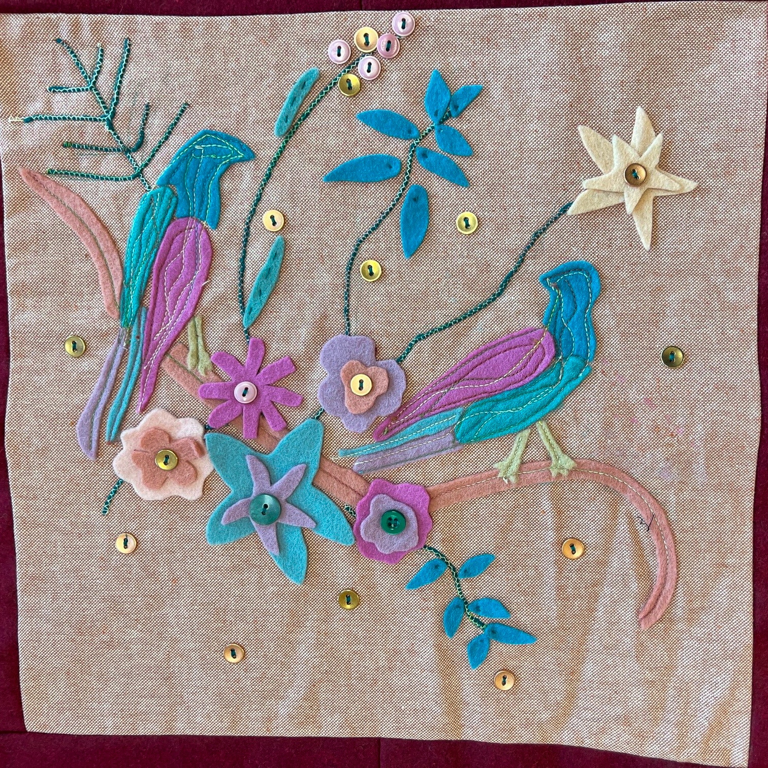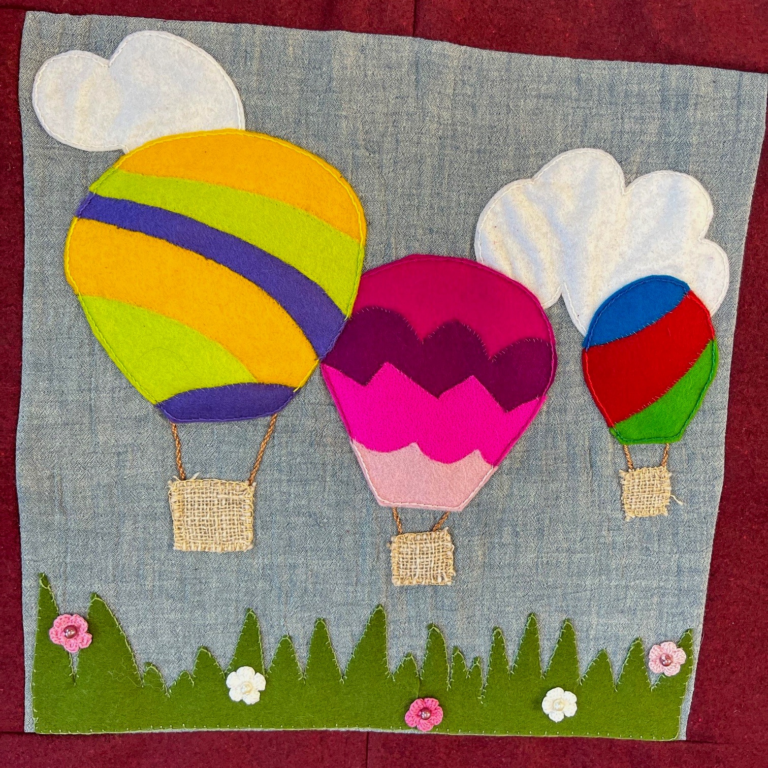 Maria (verpleegkundige): “Luchtballonnen staan voor mij voor vrijheid. In het heelal zweven de aarde, sterren en planeten vrij rond. Ook al weten we niet waar het hiernamaals is, het is er vast heel vredig en mooi. Het gevoel van vrijheid wil ik met mijn illustratie delen. Ik vind het prachtig dat we met z’n allen iets moois hebben gemaakt. Met deze uitgeleide deken kunnen we een warme laatste groet meegeven. Het was bijzonder om hieraan mee te mogen werken!”