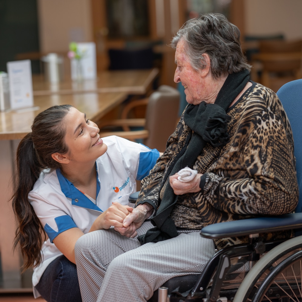 “Dankzij het leren en werken tegelijkertijd kan ik alles wat ik heb geleerd meteen toepassen. Ook weet ik dat ik dadelijk steeds meer verantwoordelijkheden krijg, bijvoorbeeld na het afronden van de medicijntoets. Dit geeft mij nóg meer motivatie. Op dit moment help ik bewoners met de algemene dagelijkse levensverrichtingen, zoals douchen en aankleden. Ik vind het leuk om nieuwe dingen te leren en anderen te kunnen helpen. Dat ik de bewoners hier leer kennen en mag helpen, maakt deze baan betekenisvol en dankbaar. Door een praatje te maken, te luisteren en samen iets leuks te doen, zorg je ook voor een lach op iemands gezicht. Dat vind ik heel mooi aan mijn werk.”