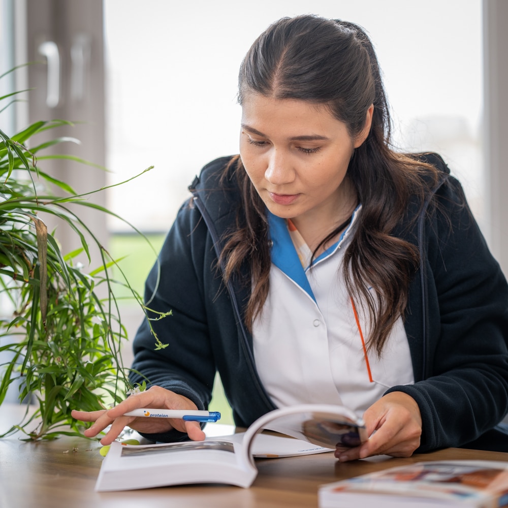 “In april startte de opleiding met twee lesdagen per week. Het is een klas met allemaal nieuwe medewerkers van Proteion. Na een paar weken gaan we nog maar één dag naar school. Het is fijn dat ik altijd terecht kan bij mijn collega’s als ik iets niet zeker weet of hulp nodig heb. Sommige opdrachten vind ik lastig omdat ik de Nederlandse taal niet optimaal beheers. Ongeveer 2,5 jaar geleden ben ik namelijk van Turkije naar Nederland verhuisd.”